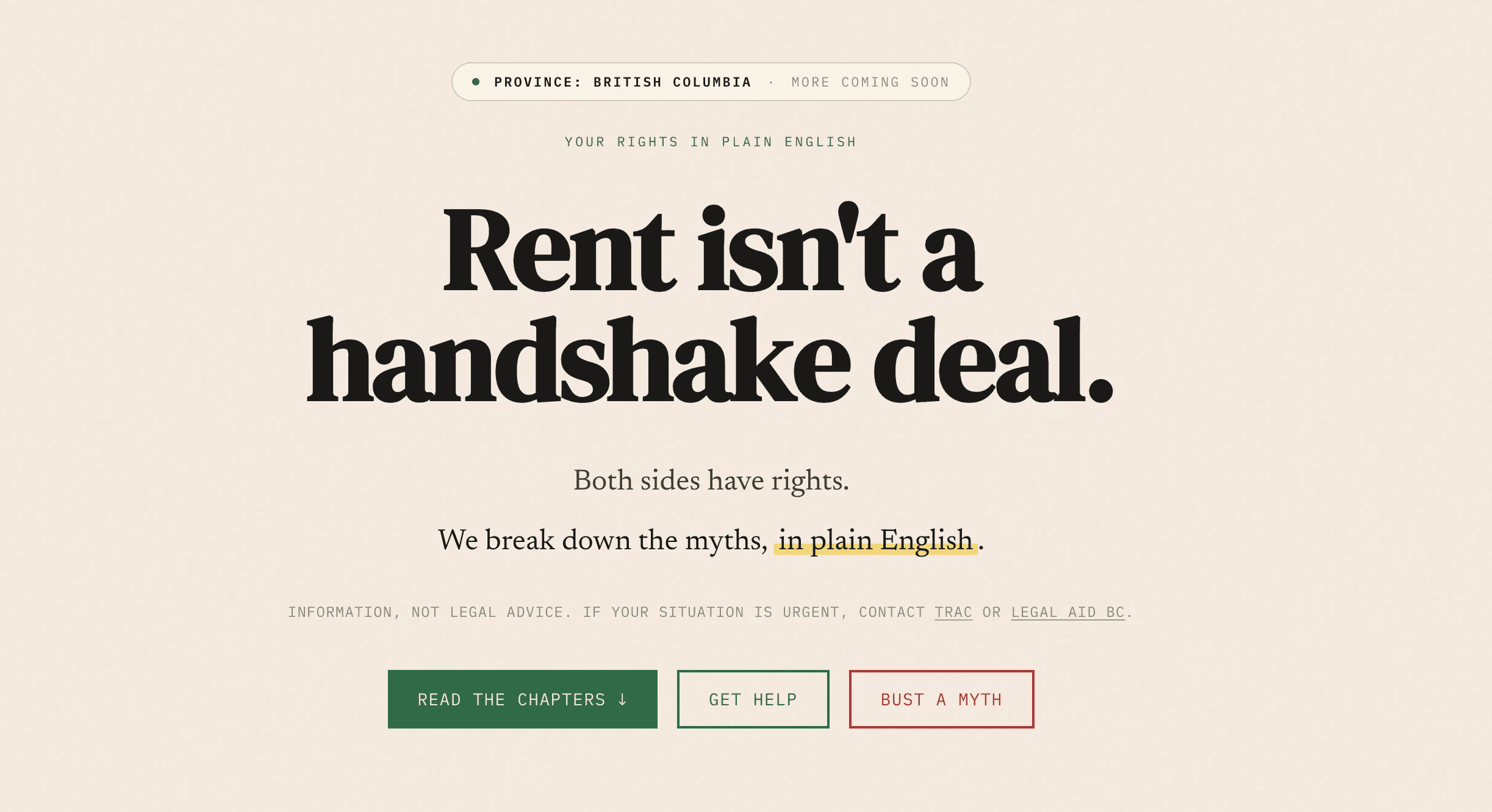 So we built renterfacts.ca. One site that covers every stage of a BC tenancy, in plain language, cited to the Act section by section. Both sides can read it. Neither side gets picked.